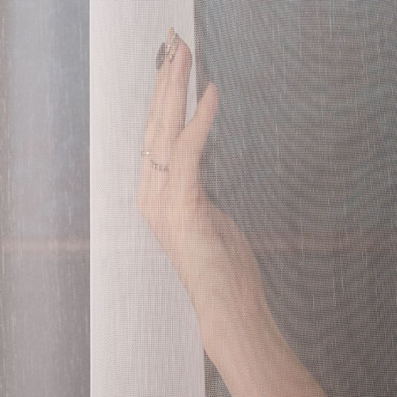 Transparentna firanka fantazyjna z delikatnym deszczykiem. Odpowiednia do okien o północnej wystawie, gdyż nie ogranicza ilości światła wpadającego do wnętrza.