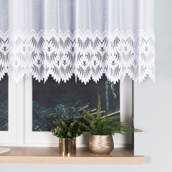 Firanka żakardowa ze wzorem na samym dole, wys. 130cm, kolor biały 018989/000/001/000130/1