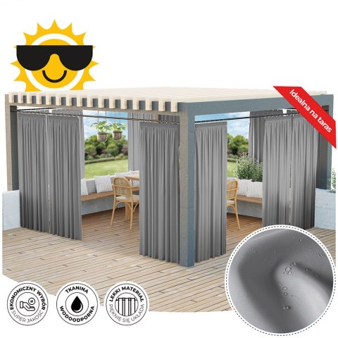 Zasłona ogrodowa Gardenia została wykończona akrylem, dzięki czemu będzie bardziej odporna na czynniki zewnętrzne. Wodoodporne wykończenie chroni przed deszczem oraz wilgocią.