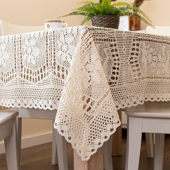 Obrus gipiurowy o ażurowym wzorze w stylu boho.