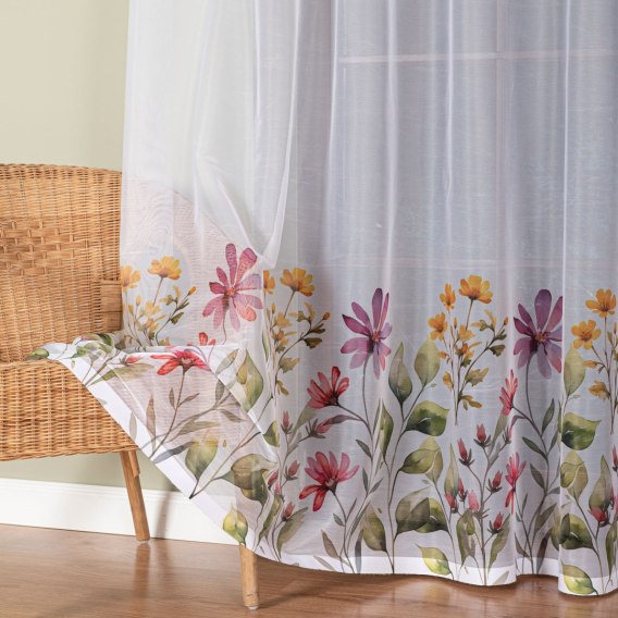 Firanka z barwnym zadrukiem w polne kwiaty.