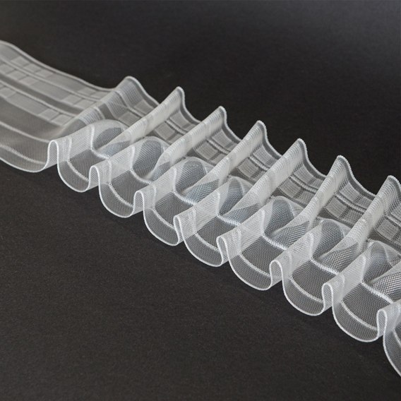 Taśma równo marszcząca, wyróżniająca się drobnymi, równomiernymi pionowymi fałdkami, które pięknie poszerzają się ku dołowi. Jej zaletą jest możliwość regulacji szerokości dekoracji okiennej przez delikatne poluzowanie sznurków.
