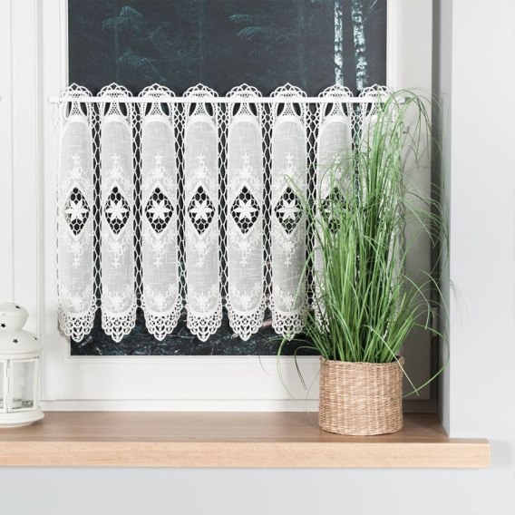 Ten model firanki dostępny jest w różnych rozmiarach, w kolorze białym i kremowym.